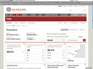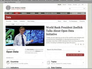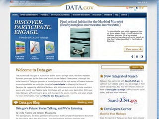 1. Open data involves making government and other data publicly available in a format that is accessible to both people and machines. This allows data to be more easily reused and repurposed.